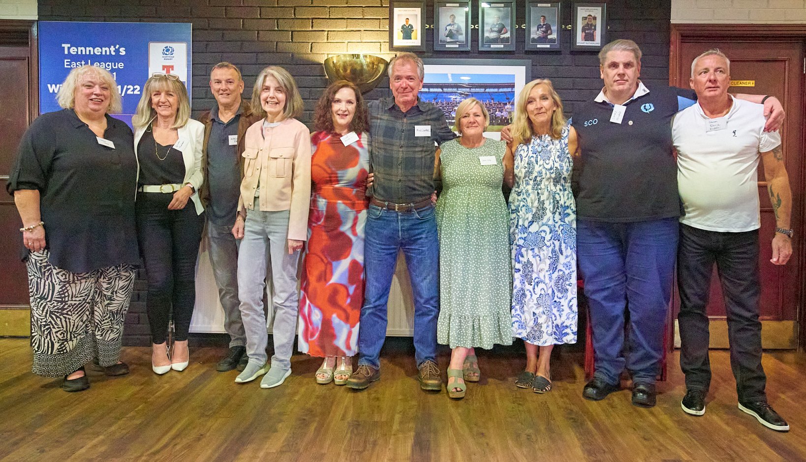 During the course of the day, around 40 of the original intake of 79 girls attended the event, along with around 30 of the intake of 144 boys. Susie advised that everyone who attended was of course special, but among the 1973 starters was 1990 Grand Slam hero Iwan Tukalo, who featured at half time at the following day’s Georgia international at Murrayfield, where he introduced a short video showing Scotland rugby legends taking supplies to Ukraine. The 4x4s they took (provided by ‘Jeeps For Peace’), contained humanitarian aid donated by ‘Breaking the Chains’. Also attending was the boy who came Dux of School six years later in 1979 – consultant cardiologist Ashok Jacob, who was photographed at the Dux honours board on the Memorial stage which includes his name. Last but not least, three politicians posed together – Ian Blackford MP, MSP Sarah Boyack and former MSP and Presiding Officer Ken Macintosh.