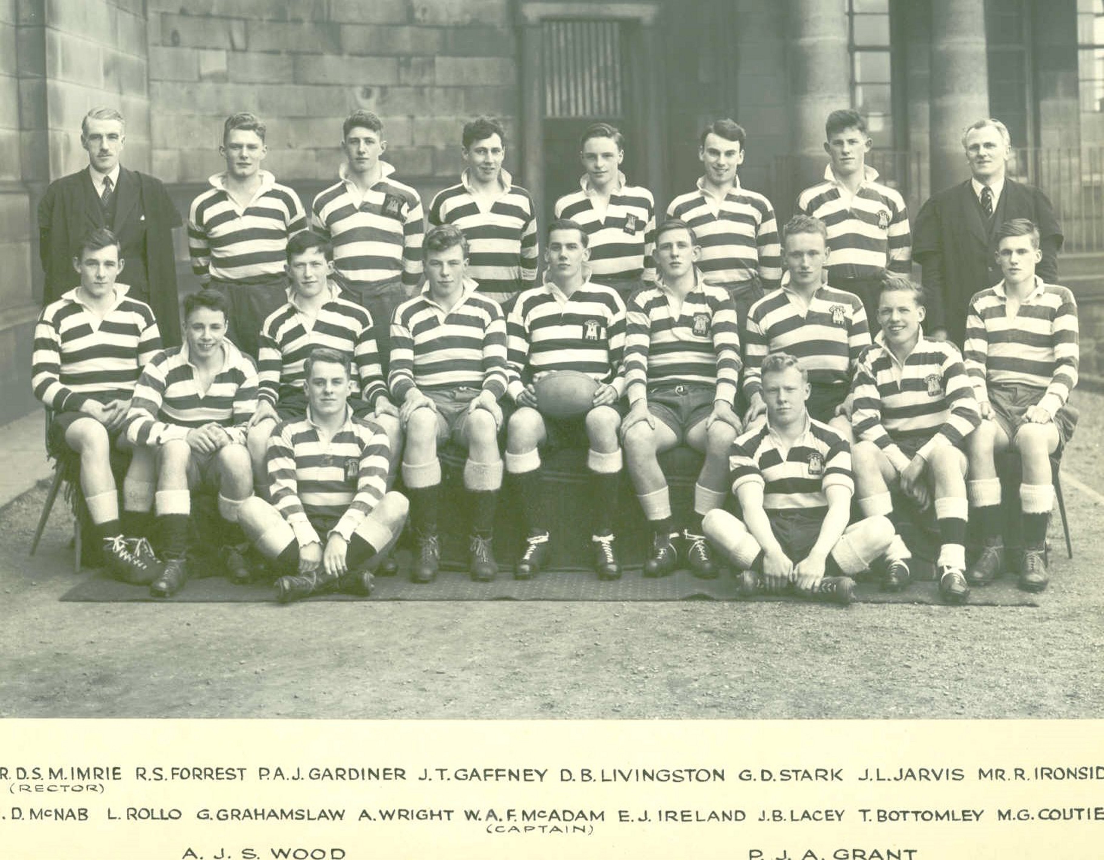 Sports have, for the last century and a half at least been a mainstay of Royal High School life. Recognition is shown in the images of ‘School Celebrities’ over the years, which, around the 1930’s started to include sporting personalities along with the more traditional group of Captain, Dux, Senior CCF officer, Pipe major and the like. Captain of Football (how rugby was described), Cricket, Golf and Games champion began to intrude in the traditional group.