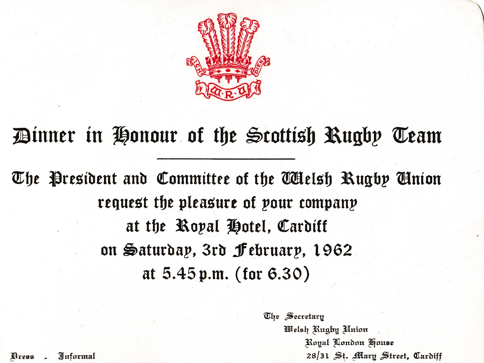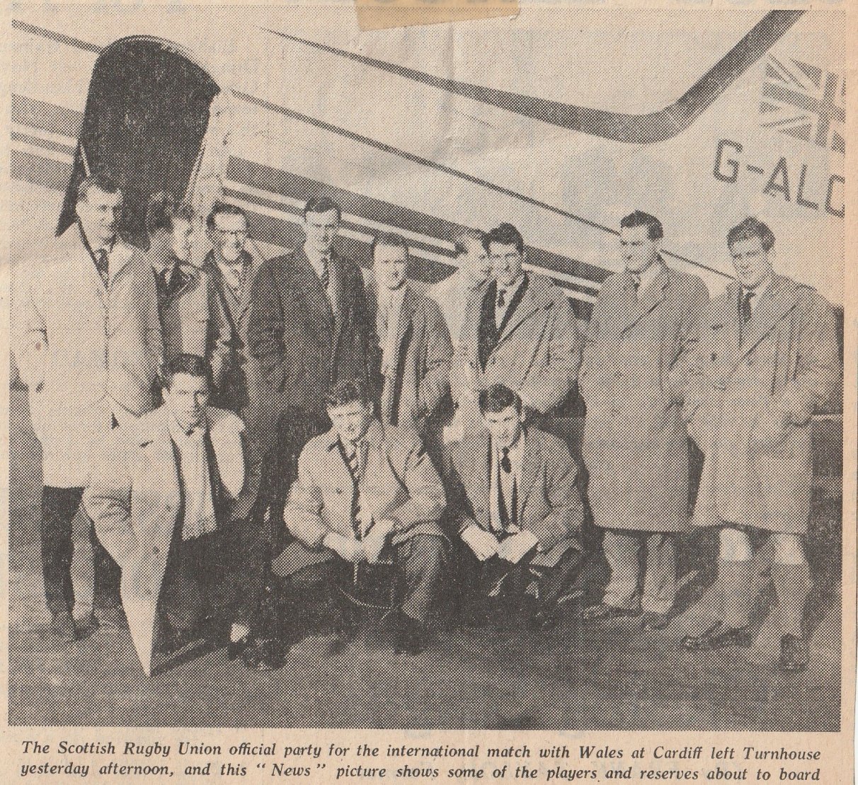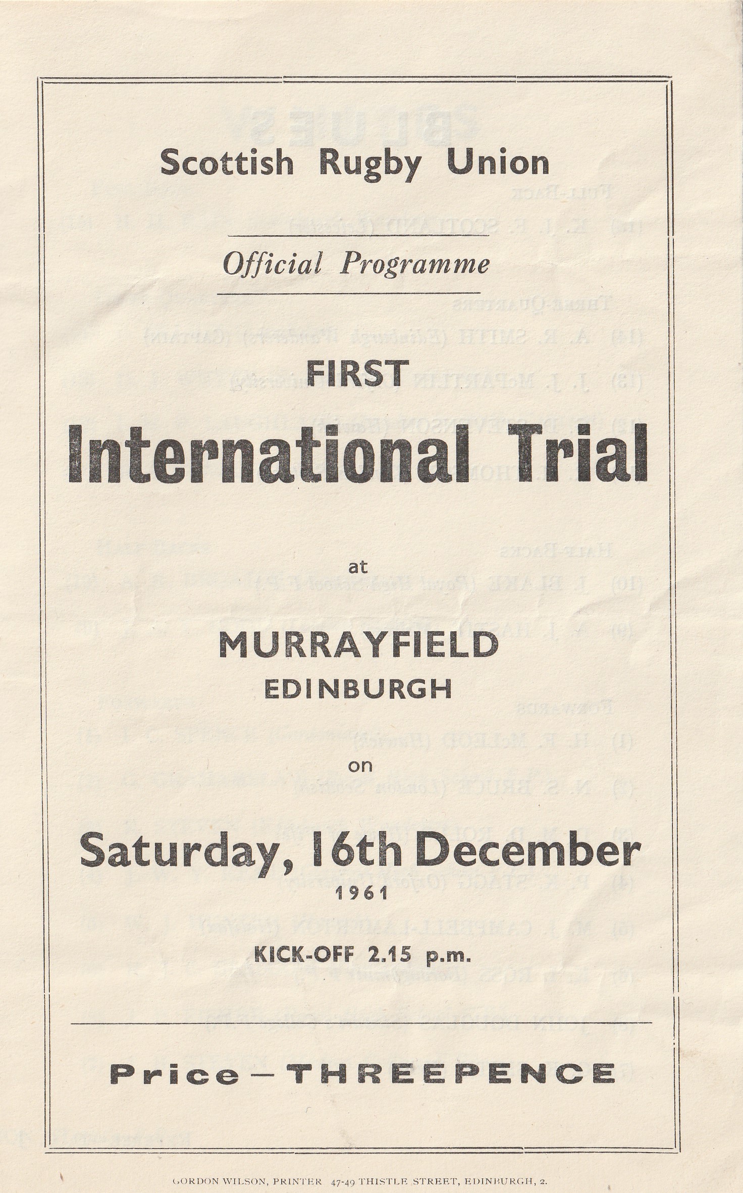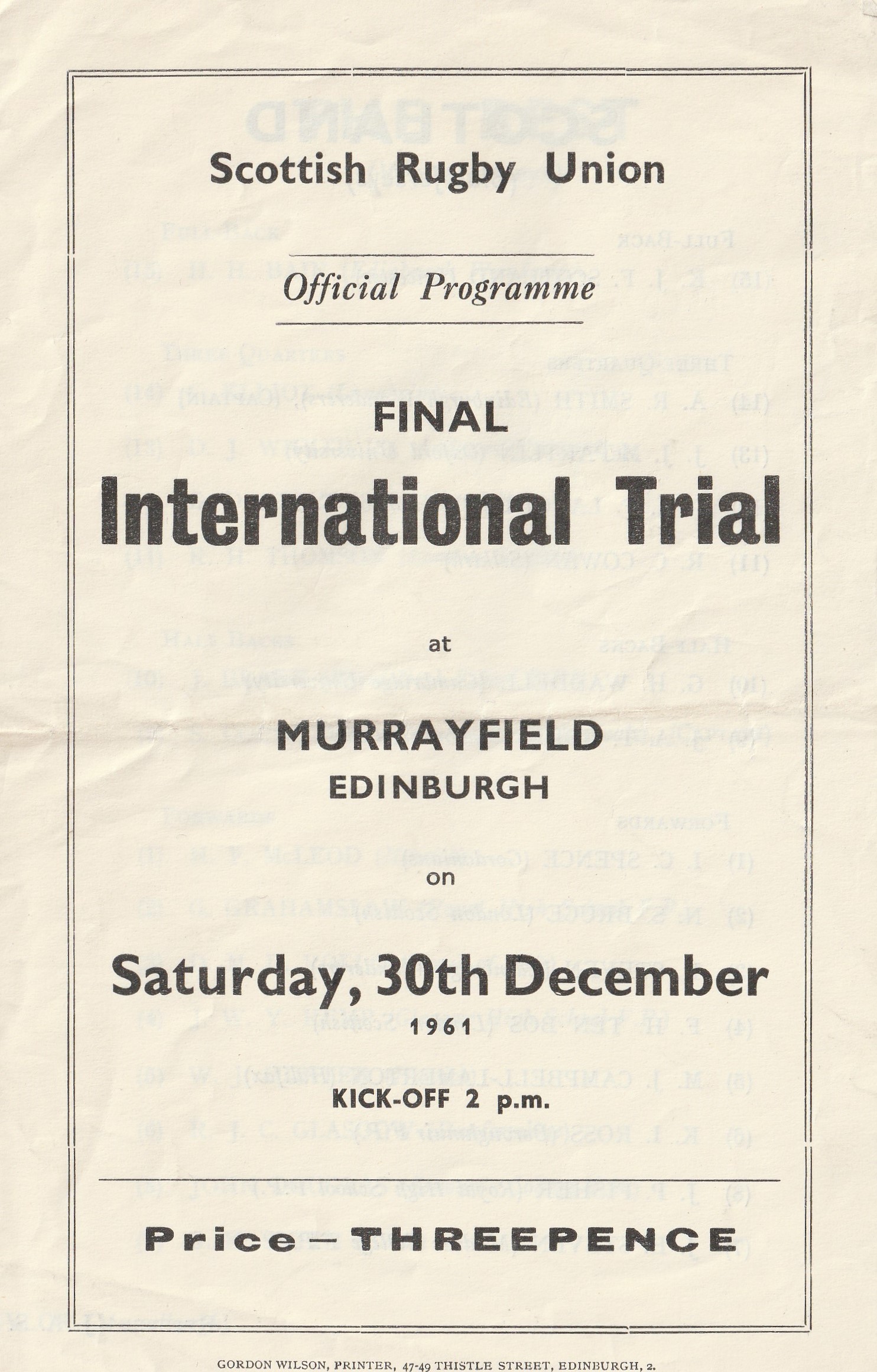 Those that happened were often uncapped, as Bruce Laidlaw and Arthur Orr found on the Argentinian tour of 1969 (later rectified). There were two replacements per team, but they were not used on the day, unlike the current eight which often are all used. and consequentially capped. There are now also typically four Autumn matches in addition to the five in the now six nations tournament, so George (and the other names mentioned) would likely have accumulated several international caps even as replacements. To measure George’s achievement as a trialist, during the Pringle Fisher/ Jimmy Blake era (1961-1967), aside Bruce and Arthur, only one other RHS player – Richard Cameron, was similarly honoured. Pringle Fisher went on to play 25 times for Scotland, captaining them on nine occasions. The peak of George’s rugby-playing career was in 1962, when he was selected as travelling reserve for Scotland three times, against France, Wales and England.