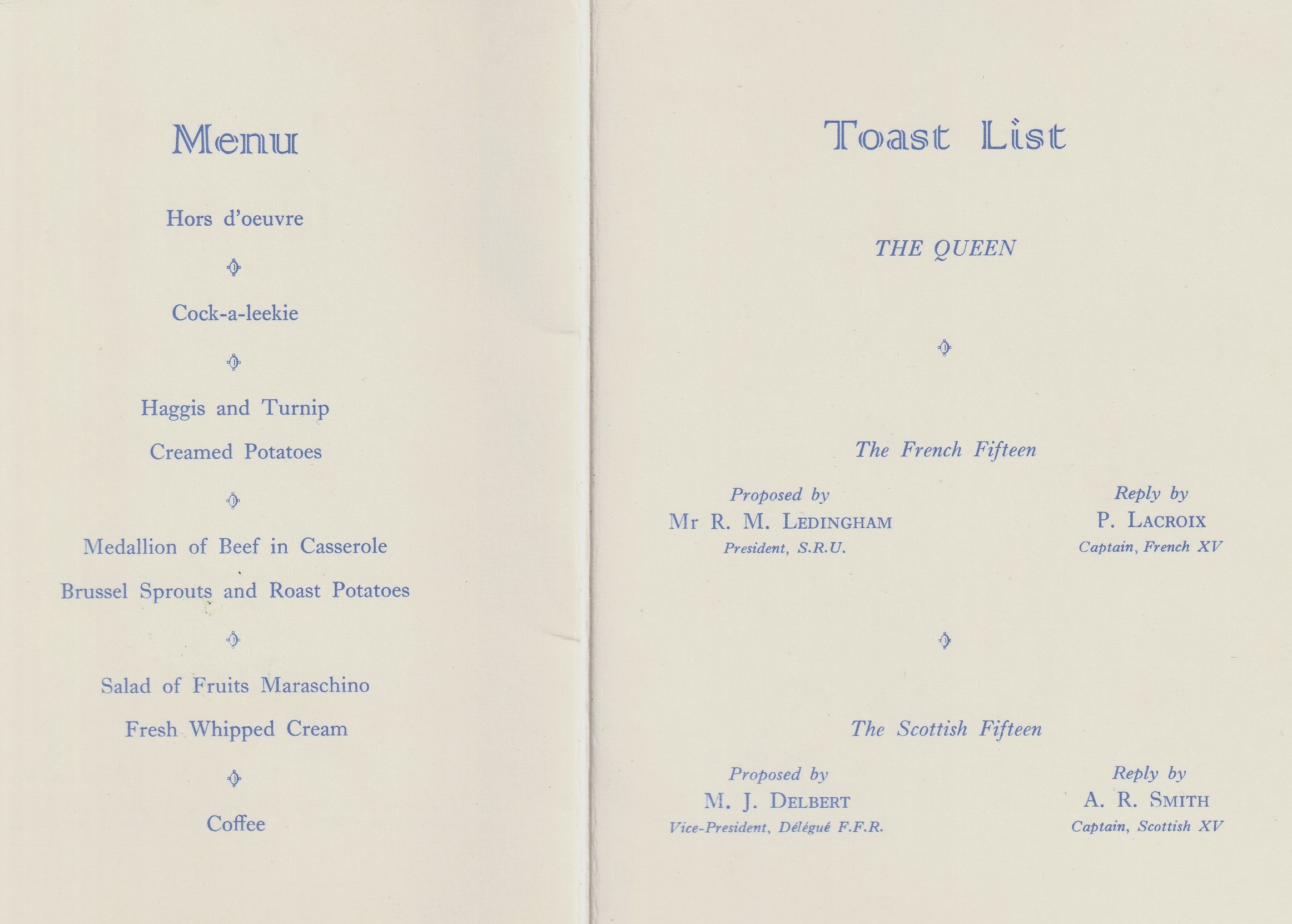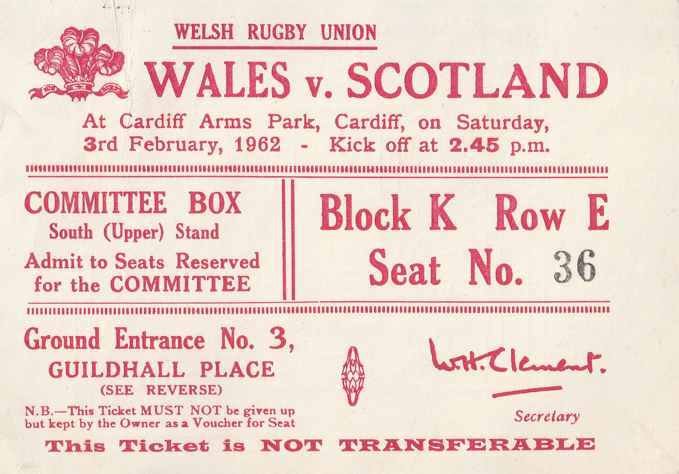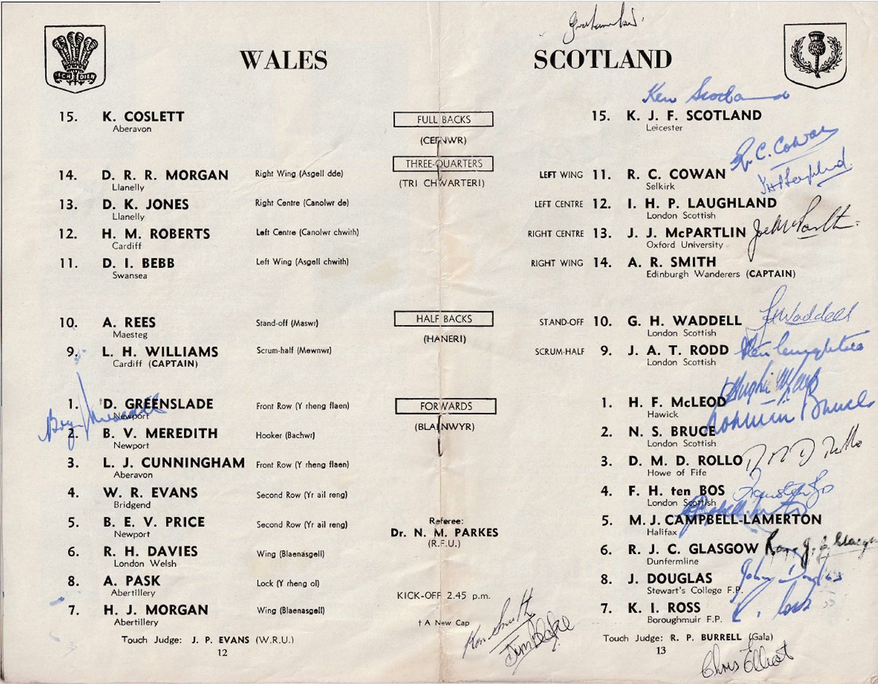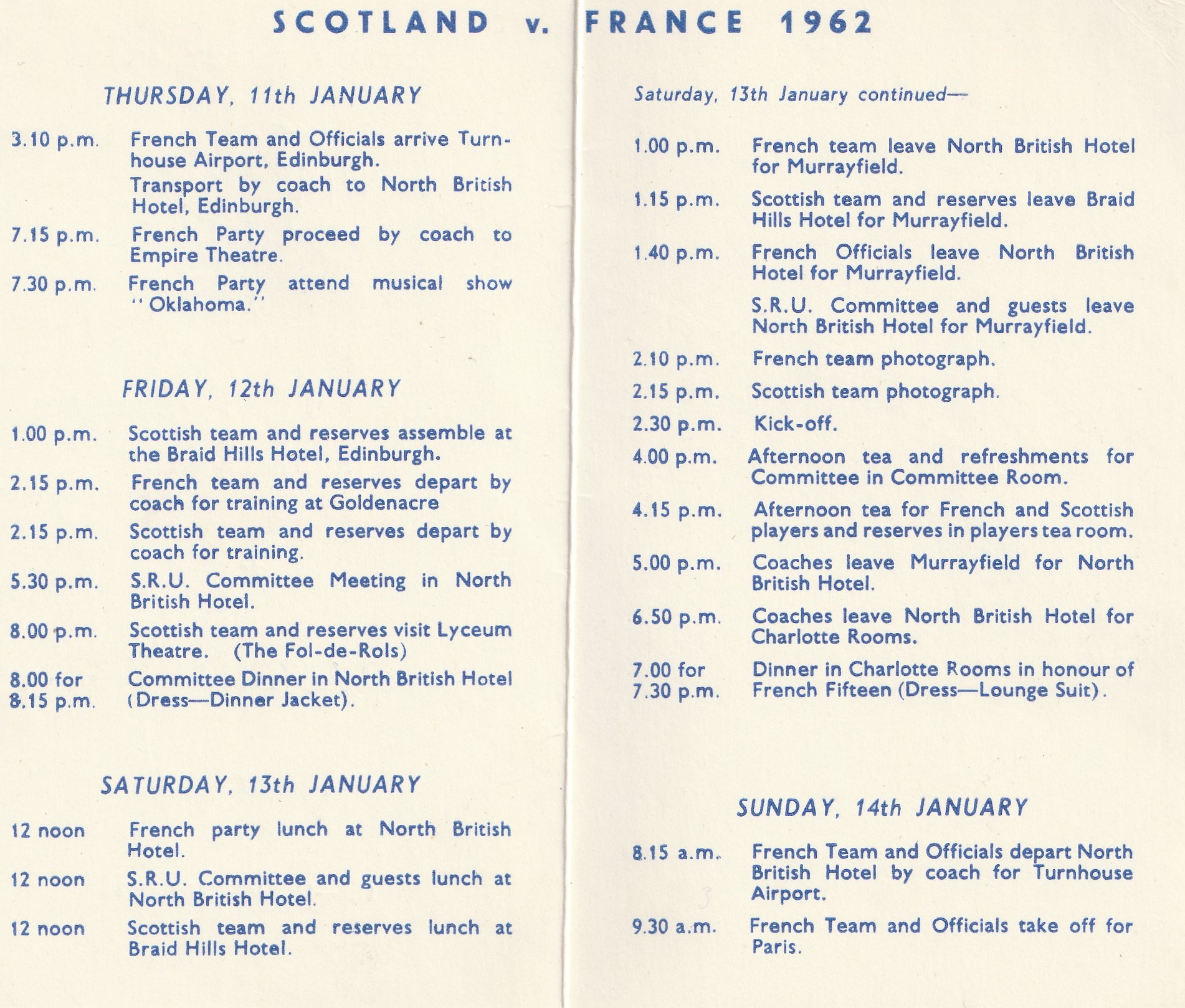 Those that happened were often uncapped, as Bruce Laidlaw and Arthur Orr found on the Argentinian tour of 1969 (later rectified). There were two replacements per team, but they were not used on the day, unlike the current eight which often are all used. and consequentially capped. There are now also typically four Autumn matches in addition to the five in the now six nations tournament, so George (and the other names mentioned) would likely have accumulated several international caps even as replacements. To measure George’s achievement as a trialist, during the Pringle Fisher/ Jimmy Blake era (1961-1967), aside Bruce and Arthur, only one other RHS player – Richard Cameron, was similarly honoured. Pringle Fisher went on to play 25 times for Scotland, captaining them on nine occasions. The peak of George’s rugby-playing career was in 1962, when he was selected as travelling reserve for Scotland three times, against France, Wales and England.