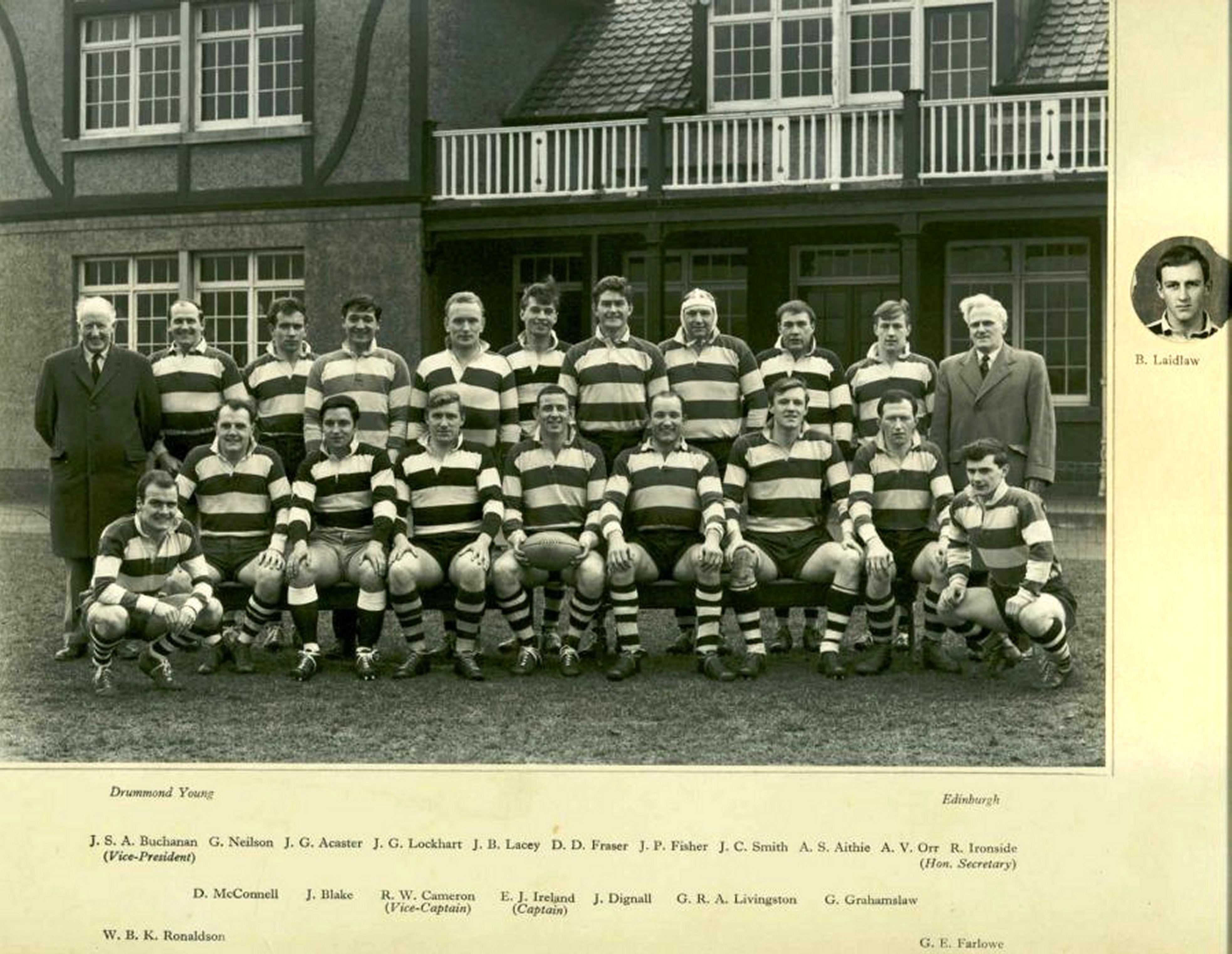 Sad News in March 2026, when we heard that George Grahamslaw had died on 12th February 2026 aged 92. George was one of the unsung heroes of a very successful Royal High FP rugby team in 1950’s and 1960’s. This article about that part of his rugby career is intended to encapsulate the careers and impact of his and his other famous team-mates’ success.