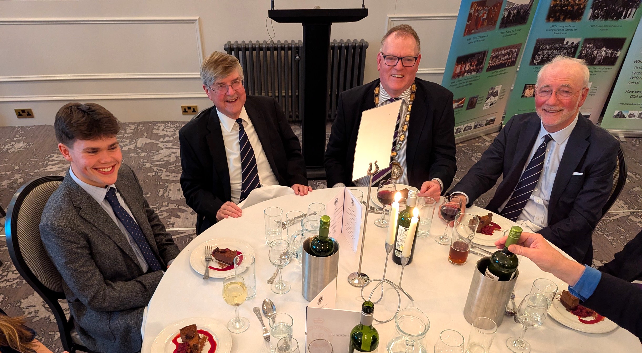 The 2026 Dinner was held on Friday 27th March in the Royal Scots Club, Edinburgh. Celebrated Poet (and Former Pupil) Tom Pow and School Ythan Hunter delivered the keynote speeches, and we are once again grateful to the School Fiddle band (once again under the tutelage of June Nelson) for their splendid entertainment. Click on any of the slides below to enable a full screen slideshow.