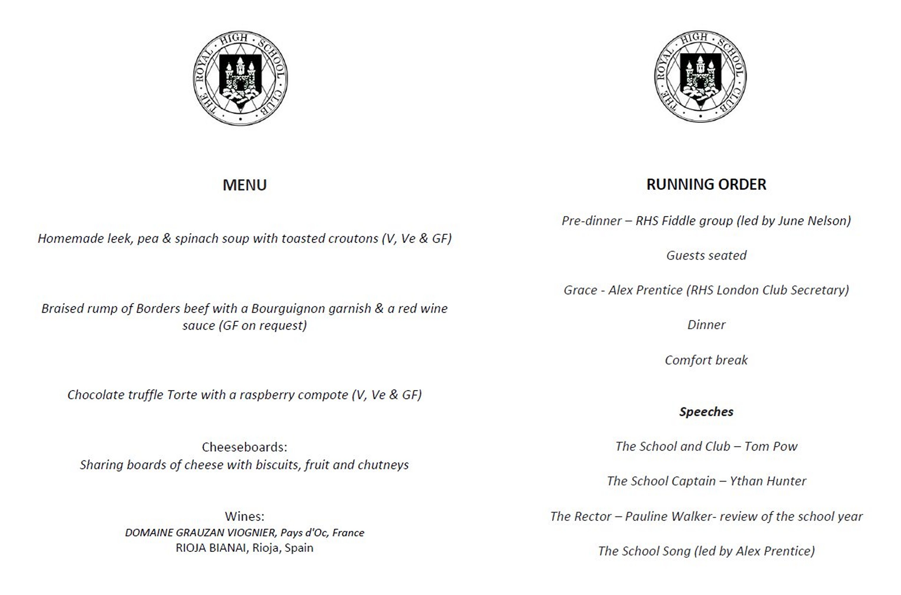 The 2025 Dinner was held on Friday 28th March in the Royal Scots Club, Edinburgh. David Robb and School Captain Hannah McLaughlin delivered the keynote speeches, and we are once again grateful to the School Fiddle band (once again under the tutelage of June Nelson) for their splendid entertainment. Click on any of the slides below to enable a full screen slideshow. Click here for to see David Robb’s inspirational toast to the School and the club), and here to see the programme and menu (soup, beef , tart and mousetrap).