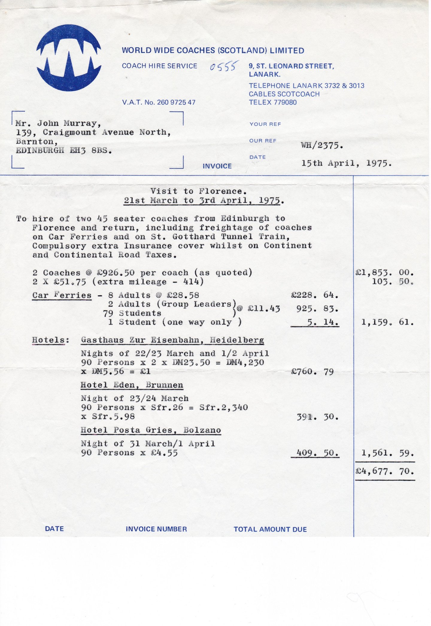 I arrived as a pupil at the school in Barnton at the same time as John Murray arrived in the music department. He was our form tutor and introduced himself along the lines of “I’m six foot one, I play rugby and I weigh sixteen stone so don’t mess me around.” We didn’t. I was one of those who travelled to Florence in 1975 and still remember eating pizza and then smuggling bottles of red wine back to the monastery we stayed in during our week there. We had a number of very talented young musicians in our group and I remember the local people enjoying the concerts we gave. RIP John. Mike Whittaker