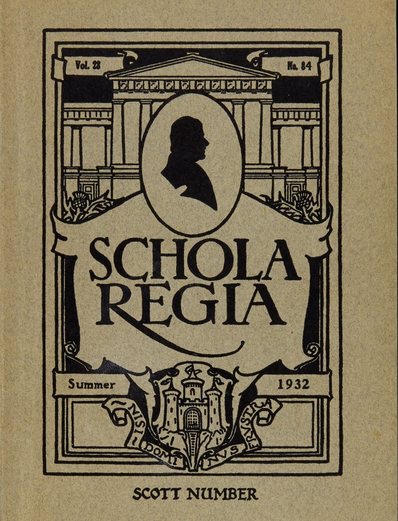 Other items in the newsletter include the 2021 School Remembrance service, COVID Schola Regia, and the 250th birthday celebration for Sir Walter Scott (which is the next article on this page). If you are reading this notice, and have not received your copy of the newsletter, please contact us.