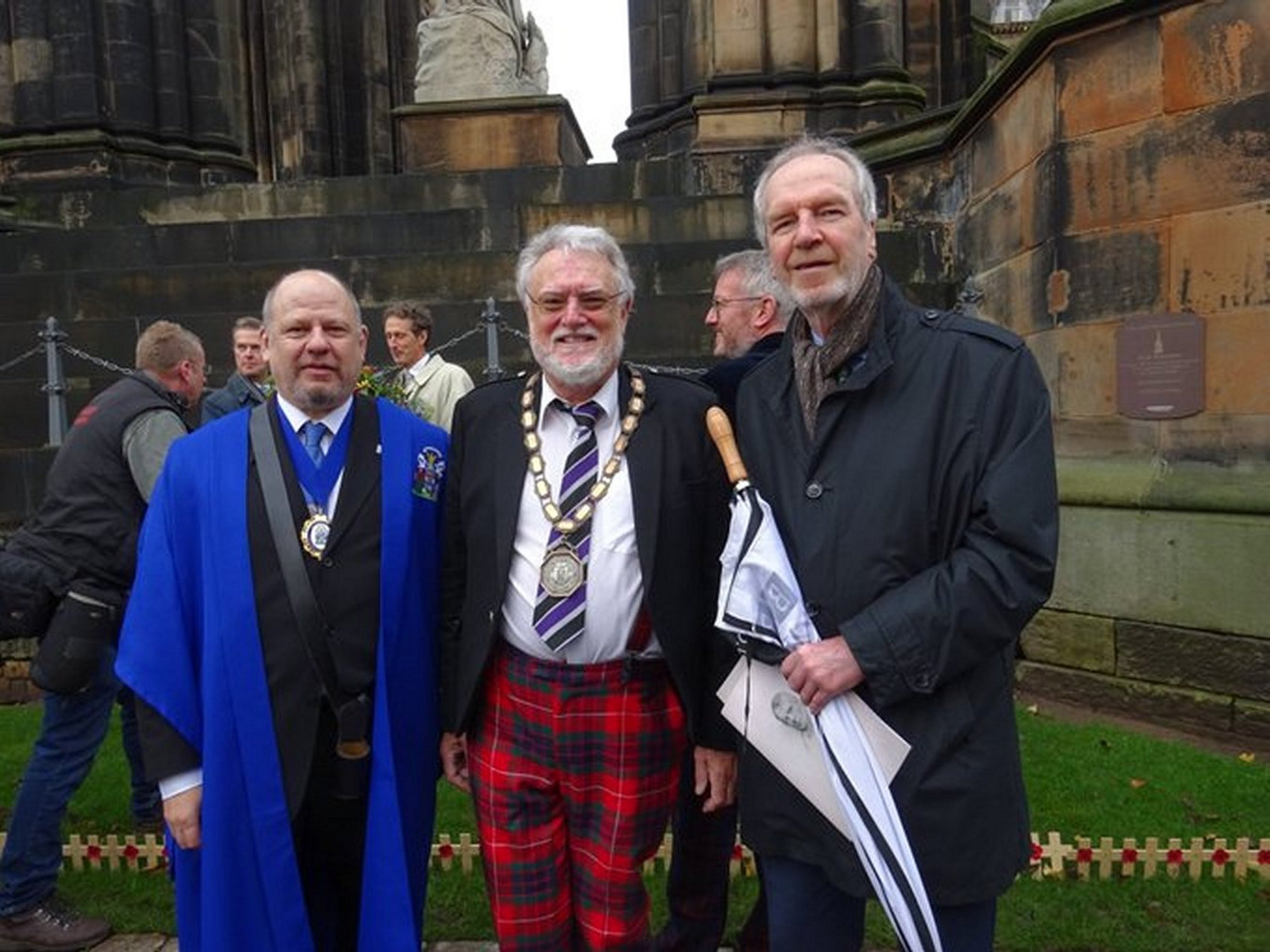 The school was represented by Head of Biology Gordon Rutter (doubling up in his capacity as Officer to the Convenery of the Incorporated Trades of Edinburgh), along with RHS Club President Ian R C Cowie and Alastair Allanach. Following the service, these gentlemen were privileged to join the procession to The Scott Monument, via Parliament Square, The Mound, Galleries Precinct and Princess Street Gardens. The photo gallery below shows some of the scenes. Click on any of the images to enable a full-screen slideshow.
