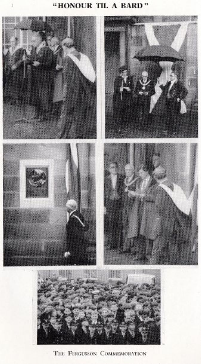 The Royal High School is marking the anniversary in several ways, including a poetry-based event (involving many pupils) and the re-unveiling of the memorial plaque to Fergusson at the School at Barnton on the 9th October, 2024. The plaque was first unveiled in June 1958 at Regent Road, marking the 200th anniversary of Fergusson entering the High School. A tribute to Fergusson has been created by Graham Holton, a former pupil and Strathclyde University academic, and it can be accessed here.